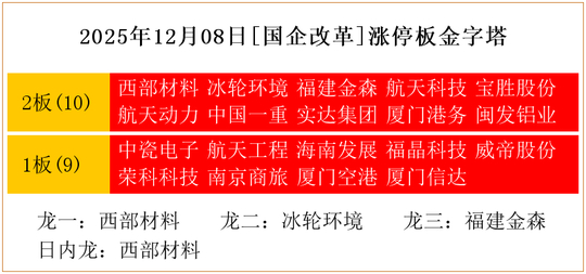 2板(10):西部材料、冰轮环境、福建金森、航天科技、宝胜股份、航天动力、中国一重、实达集团、厦门港务、闽发铝业。