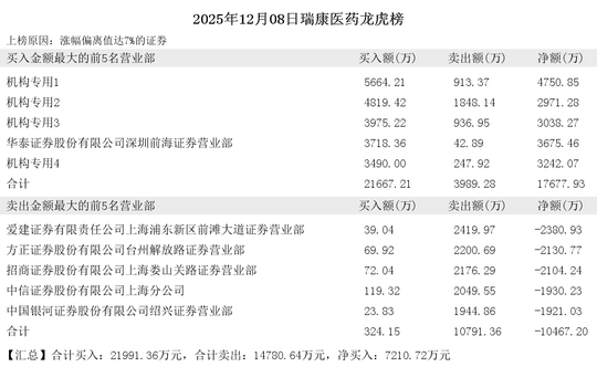 买入前5席为:机构专用1、机构专用2、机构专用3、华泰证券股份有限公司深圳前海证券营业部、机构专用4。共计买入:21667.21万元,共计卖出:3989.28万元。