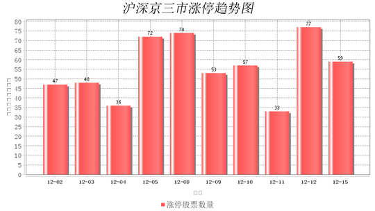 今日沪深京三市一共59支股票涨停,较上一个交易的77支减少18支。