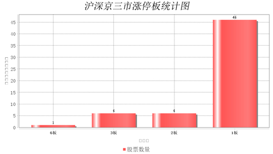 6板共1支,3板共6支,2板共6支,1板共46支,市场当前最高板为6连板!