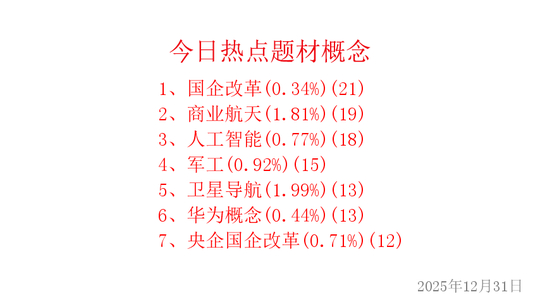 做主线,抓龙头!今天是2025年12月31日,我们来复盘和梳理今日的热点题材概念主线。