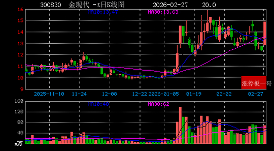 4、金现代(300830)(20.0%)