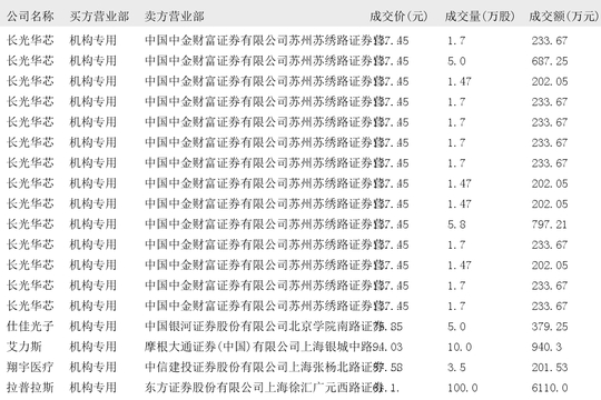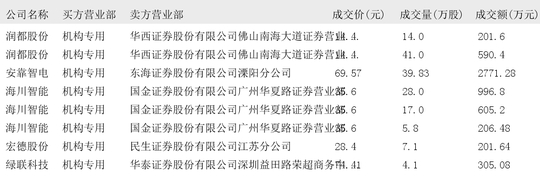 今日大宗交易榜单中出现机构买入席位的个股为:润都股份、安靠智电、海川智能、宏德股份、绿联科技、长光华芯、仕佳光子、艾力斯、翔宇医疗、拉普拉斯。