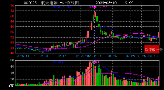 2、航天电器(002025)(9.99%)