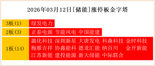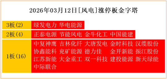 一共有18支个股涨停。其中,绿发电力3板;正泰电源、节能风电、中国能建2板;潞化科技、深圳新星、大唐发电、科森科技、金时科技、梅雁吉祥、协鑫能科、德龙汇能、纳百川、金开新能、江苏新能、建投能源、新天绿能、中际联合1板。