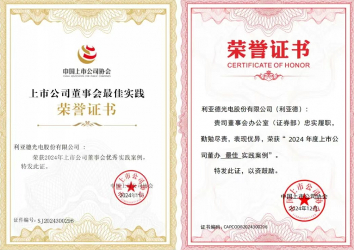 企业长青的根基,在于始终做“难而正确的事”。利亚德成立三十年、上市十三年来,始终将规范治理与技术创新并列为发展双引擎,此次中上协双奖的获得,是资本市场对公司治理体系的深度认可,更是持续精进的动力。