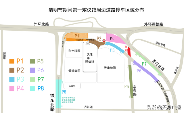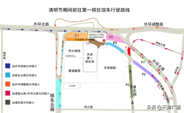 (三)外环北路由东向西行驶与津榆公路行驶的祭扫车辆,可停入外环北路和外环辅路P6、P7停车场;