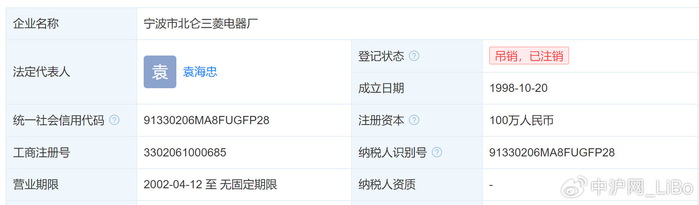 据招股书袁海忠简历显示,1994年10月至2016年11月,袁海忠任宁波市北仑三菱电器厂(以下简称“北仑三菱”)法定代表人、厂长、负责人。值得注意的是,据北仑三菱工商信息显示,北仑三菱成立于1998年10月,也就是说,袁海忠开始担任北仑三菱法定代表人、厂长、负责人的时间竟然比其成立的时间早了足足4年之多。