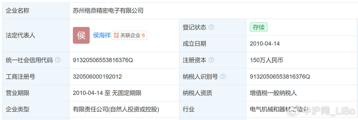 据招股书祝立简历显示,2009年7月至2013年12月,祝立曾任苏州格鼎精密电子有限公司(以下简称“格鼎精密”)副总经理。据格鼎精密工商信息显示,格鼎精密成立于2010年4月,也就是说,祝立开始担任格鼎精密副总经理的时间业绩其成立的时间早了9个月。