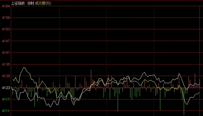 基于上述两个因素,今上午A股震荡企稳,底部抬高(由前日的4099点到4112点),顶部上移(由前日的4123点上升到4131点)。