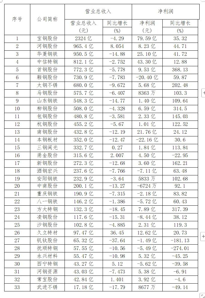 2025年前三季度,A股33家钢铁上市企业营业总收入达13291.13亿元,同比下降6.4%;净利润174.9亿元,同比增长351%。