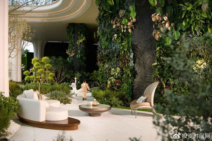 让建筑、生活与自然无界融合的全维立体景观,是贝宸S1另一项特色。基于大数据洞察与潜在客户调研,项目早期确立了“风景里的家”的景观设计目标,并对主入口、下沉庭院、开敞式架空层、单元大堂及第五立面(建筑屋顶面)等空间进行立体景观设计,引入两百余种特色植物、千余吨天然石材,让贝宸S1的景观体验充满“虽由人作,宛自天开”的自然野奢感。