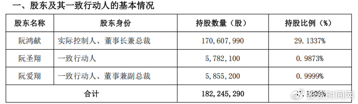 值得一提的是,截至公告披露日,阮鸿献持股约1.71亿股、持股比例为29.13%;阮圣翔、阮爱翔分别持股578.21万股、585.52万股,持股比例均约为1%。两人目前所持有股份或也是阮鸿献转让而来。