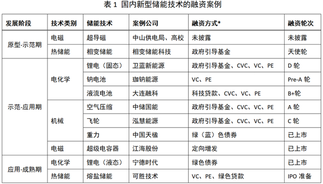 对处于早期发展的新型储能技术领域,资本市场通过科技金融,可采用“股债联动”的方式,以多元化资金推动技术发展,相关特征有三。一是资金来源覆盖政府、产业和市场三类,其中,公共资本发挥引导作用,产业资本推动技术验证与应用,市场化风险资本加速技术筛选,表明于卫蓝新能源、中储国能、泓慧能源等案例(国科创投,2022a,2022b;国投创业,2020)。二是产业资本的角色重要,龙头企业常提供终端应用场景与产业链资源支持,更以“首购者”角色完成商业闭环验证。例如,卫蓝新能源同时获得三峡、小米、蔚来等下游客户与天齐锂业等上游供应商的投资,以加速技术验证与成长(三峡资本,2022;叶玲珍,2023)。三是科创类债务融资逐渐崛起,大连融科获得交通银行专项科技贷款为一例,以落实其电池产业化项目(新华网,2024)。