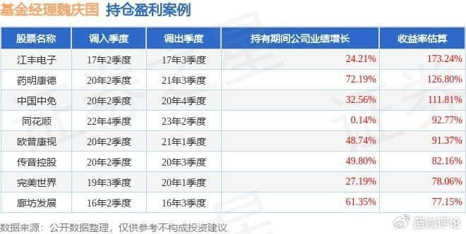 以下为魏庆国所任职基金的部分重仓股调仓案例: