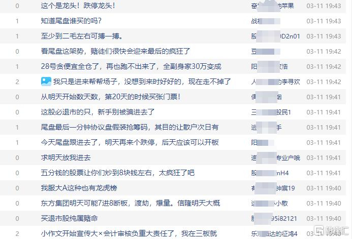 在此前的“七连跌停”中,在东方集团股吧,13万投资者中,“一夜无眠”“血本无归”的哀嚎此起彼伏。这些投资者多数在2024年三季度股价暴涨期间入场,平均持股成本2.8元,如今亏损幅度超60%。
