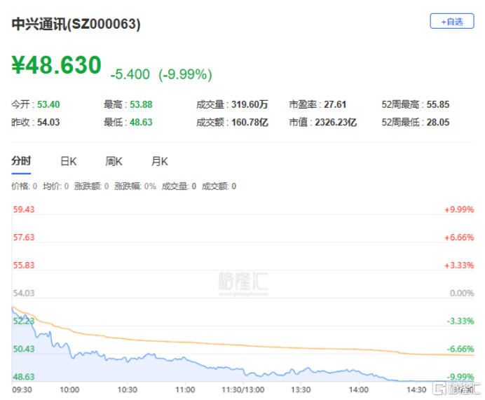 中兴通讯跌停,报收48.63元。消息面上,据报,美国联邦通信委员会(FCC)宣布,主流电商平台已下架数百万件中国电子产品,当中涉及中兴通讯等公司的家用安防摄像头和智能手表。市场同时关注,FCC计划就是否扩大禁令进行投票,未来可能禁止含有黑名单公司组件的设备获得授权。
