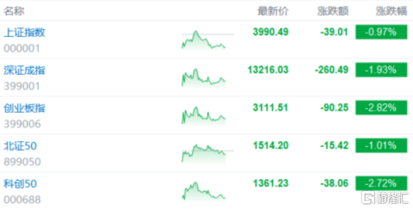 11月14日,A股三大指数集体走低,截至收盘,沪指跌0.97%报3990点,深证成指跌1.93%,创业板指跌2.82%,科创50指数跌2.72%。全市场成交额1.98万亿元,较前一交易日缩量853亿元,逾3300股下跌。