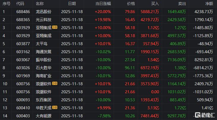 高位股方面,胜利股份6连板,真爱美家、九牧王5连板,龙洲股份、华夏幸福4连板,首开股份5天3板,合金投资4天3板,华瓷股份、中水渔业、和顺石油等3连板。