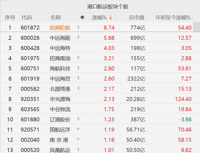 格隆汇12月1日|A股市场港口航运股走强,其中,招商轮船一度触及涨停,创历史新高,中远海能涨超5%,中远海特涨4%,招商南油涨超3%。消息面上,上周五,波罗的海干散货运价指数较前一交易日上涨80点或3.2%,报2560点,为连续第12个交易日上涨,创下2023年12月以来的最高水平,周涨幅12.5%。