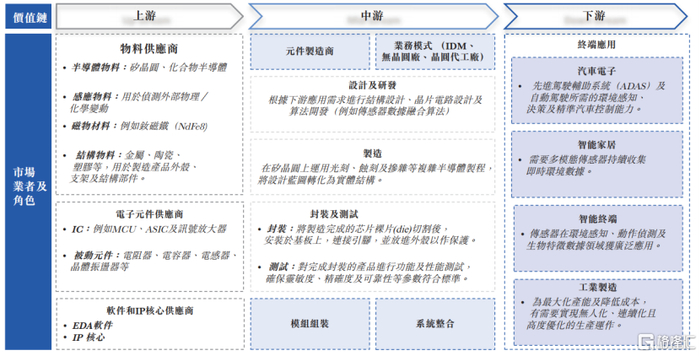 从价值链来看,传感器及执行器行业有三个关键环节。