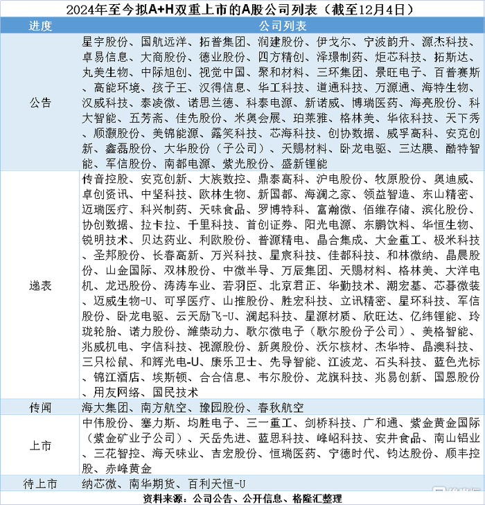 近期,又有多家A股公司迎来A+H双重上市的进展,相关表格见文末。