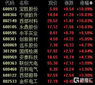 超导概念股上涨,宝胜股份、西部材料、永鼎股份涨停,中孚实业涨超9%。