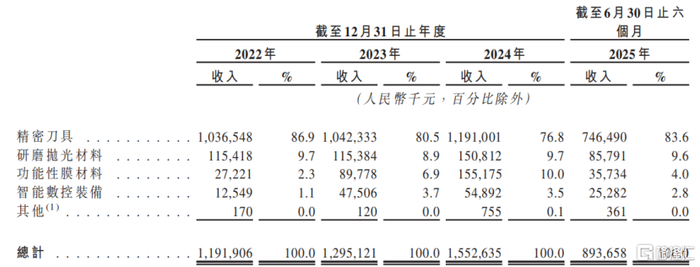 关键财务数据,来源:招股书按下游应用场景来划分,鼎泰高科相当大部分收入来自精密刀具。