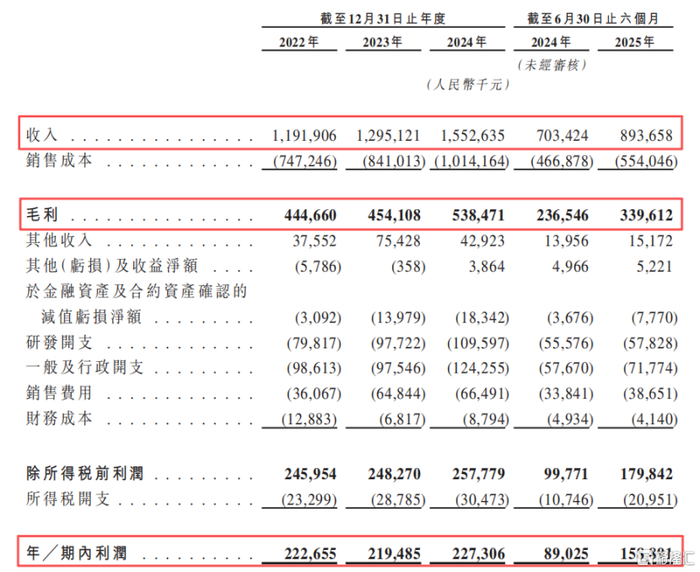 2022年、2023年、2024年及2025年1-6月(报告期),公司的收入分别为11.92亿元、12.95亿元、15.53亿元、8.94亿元,净利润分别为2.23亿元、2.2亿元、2.27亿元、1.59亿元。