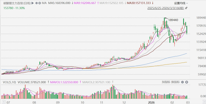 格隆汇3月3日|A股市场锂矿股集体下挫,其中,华友钻业、中矿资源跌超6%,西藏珠峰、西部矿广业跌超5%,藏格矿业、尔康制药、赣锋锂业、盐湖股份、天齐锂业跌超4%。消息面上,碳酸锂主力合约今日大跌,盘中一度触及跌停,跌幅12.99%,报150860元/吨。