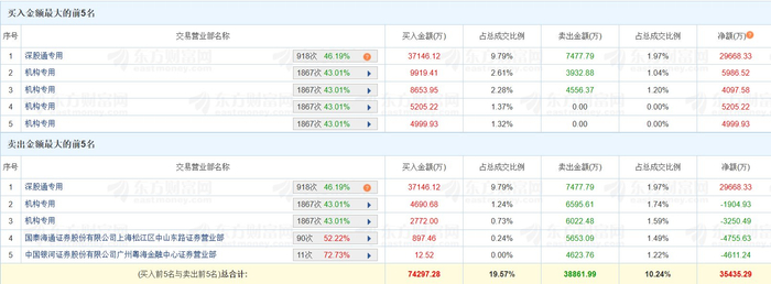 龙虎榜丨通鼎互联涨3.43%,深股通净买入2.97亿元,六机构净买入1.51亿元