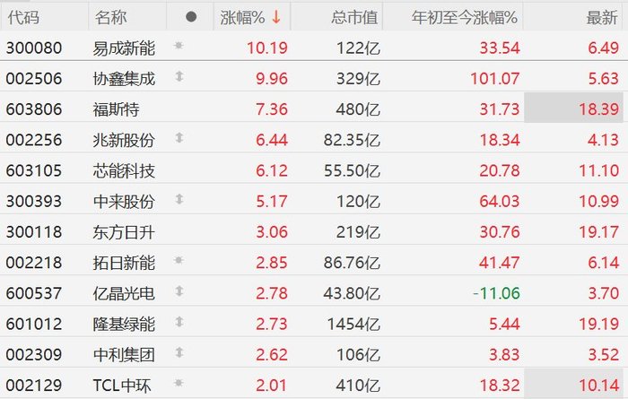 A股光伏股普涨,协鑫集成涨停,福斯特涨超7%