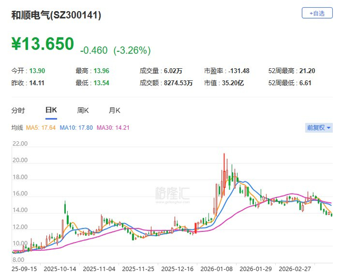 A股异动丨和顺电气盘中跌4% 股价创逾2个月新低