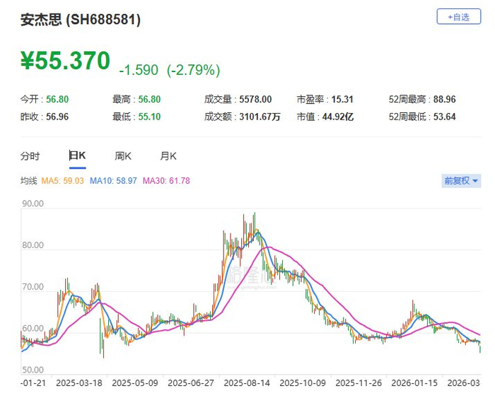 A股异动丨安杰思跌逾3%创近一年新低 较年内高点回落约19%