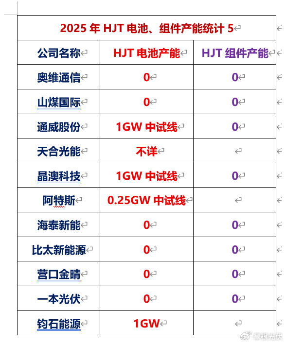 据公开信息,华耀光电、润阳股份、百川畅银、太一光伏、中利腾晖、乐通股份、晶飞光伏、鸿禧能源、水发能源、中能创光电、明牌珠宝、聆达股份、雅博股份、德晖科技等企业均有HJT扩产计划,可未见有项目正式投产。