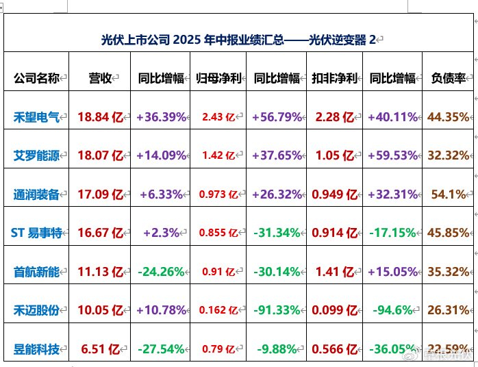 附:118家光伏相关上市公司2025年H1业绩汇总