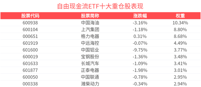 自由现金流ETF(159201)紧密跟踪国证自由现金流指数,国证自由现金流指数反映沪深北交易所自由现金流水平较高且稳定性较好的上市公司证券价格变化情况。数据显示,截至2025年12月31日,国证自由现金流指数前十大权重股分别为中国海油、上汽集团、格力电器、中远海控、中国铝业、宝钢股份、长城汽车、正泰电器、中国联通、潍柴动力,前十大权重股合计占比51.95%。