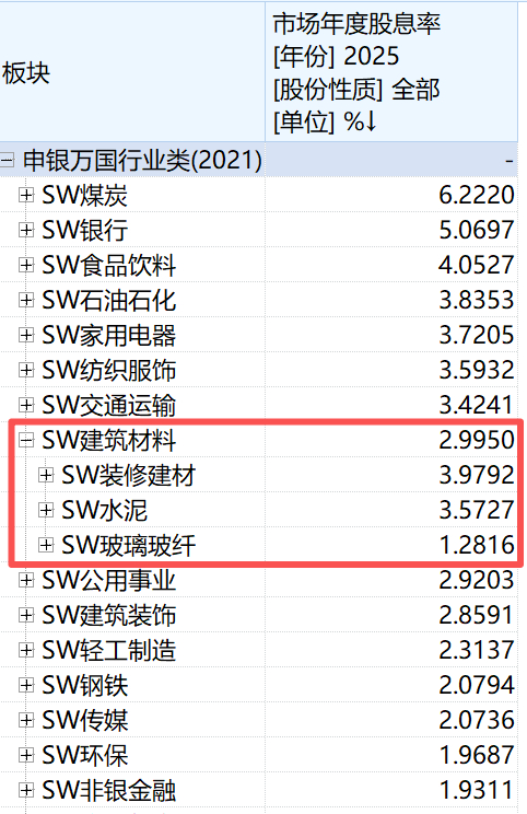 建材行业同样具备高股息属性