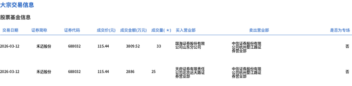 3月12日,禾迈股份大宗交易成交58万股,成交额6695.52万元,占当日总成交额的8.89%,成交价115.44元,较市场收盘价122.81元折价6%。