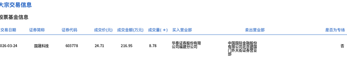 国晟科技今日大宗交易平价成交8.78万股,成交额216.95万元