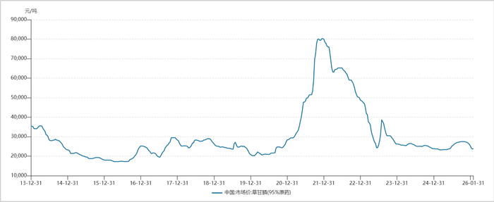 从价的角度看,除供需关系外,原材料成本也是关键影响因素。农药与大宗商品关联密切——石化衍生的烯烃、芳烃是合成多数农药活性成分的基础原料;煤炭价格影响尿素、草甘膦、乙二醇等产品;黄磷则是含磷农药不可或缺的原料。