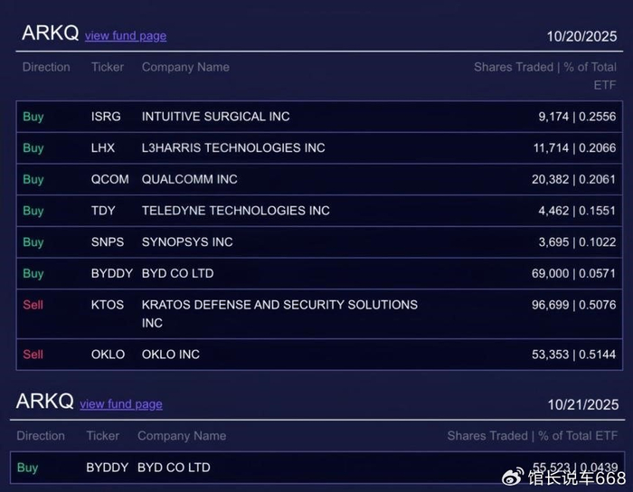 10月20日至21日,方舟投资通过旗下ARKQ基金连续增持比亚迪股份,累计买入超过12.4万股。这位以精准投资颠覆性创新公司闻名的“女版巴菲特”,其投资决策向来以长远视角和对技术趋势的敏锐把握著称。她对比亚迪的连续加仓,无疑是对比亚迪技术创新能力与长期增长潜力的有力背书。