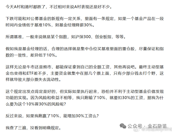 还有一点值得关注:据刘煜辉转载的一段话:公募新规对3年内业绩低于基准10%,基金经理则降薪30%,这促使基金经理将仓位紧跟基准指数,且重仓基准中的重仓股,比如算力类、人工智能类的基金,则重仓易中天、胜宏这些龙头。