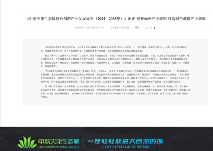 5月,生态城发布了《中新天津生态城创新产业发展规划(2024-2035年)》。