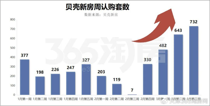而最近两周都在600套以上,上周更是冲上700多套,卖出了一条上扬线。