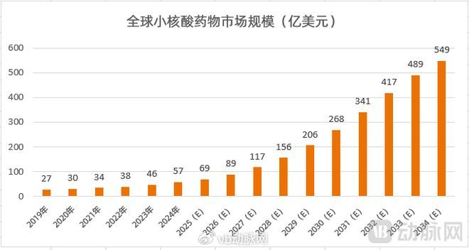 小核酸药物具有靶点拓展能力强、研发延展性强、药物作用长效且不易耐药等特性,已被公认为继小分子和抗体药物后创新药发展的第三次浪潮。当前全球小核酸药物市场展现出持续快速增长的态势。