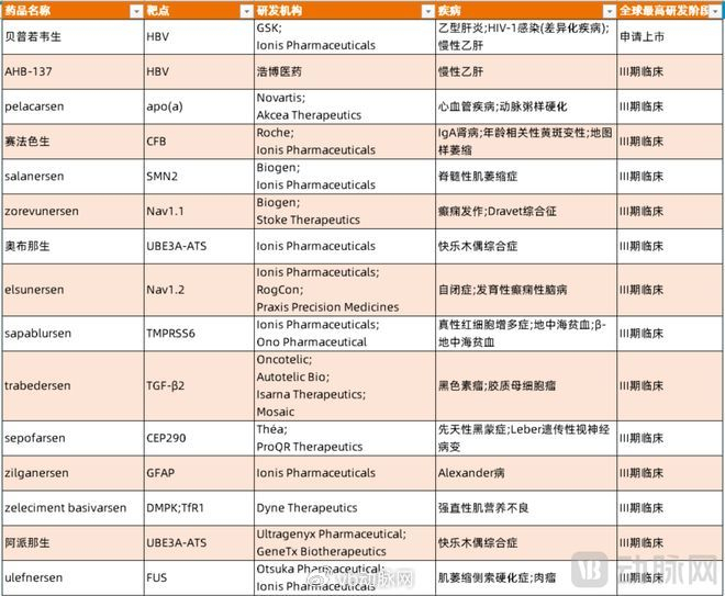 目前ASO领域正在吸引全球创新药企的关注,医药魔方数据显示,全球在研的处于活跃状态的ASO产品共556款,其中有103款产品进入临床,推进至临床Ⅲ期之后的产品有15款。随着技术的不断突破,ASO药物作为小核酸药物的中坚力量,正在逐步从罕见病领域进入更为广泛的常见病领域,未来有望发挥更大的治疗作用。