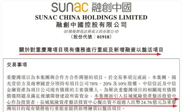 彼时,中信信托与中国长城资产、融创中国、招商银行等多方达成融资合作,共同为重庆湾项目搭建风险化解路径。