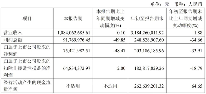 具体到第三季度,振德医疗实现营收10.84亿元,同比微增0.10%;实现净利润为7542.20万元,同比下滑48.47%;实现扣非净利润为6483.44万元,同比增长2.00%。