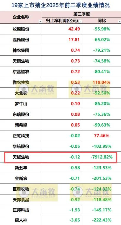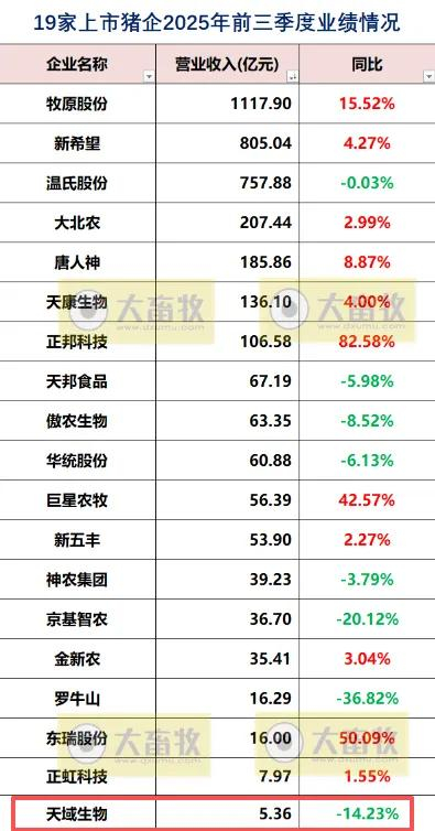 相比之下,天域生物在19家上市猪企营收排名表中成为倒数第一。